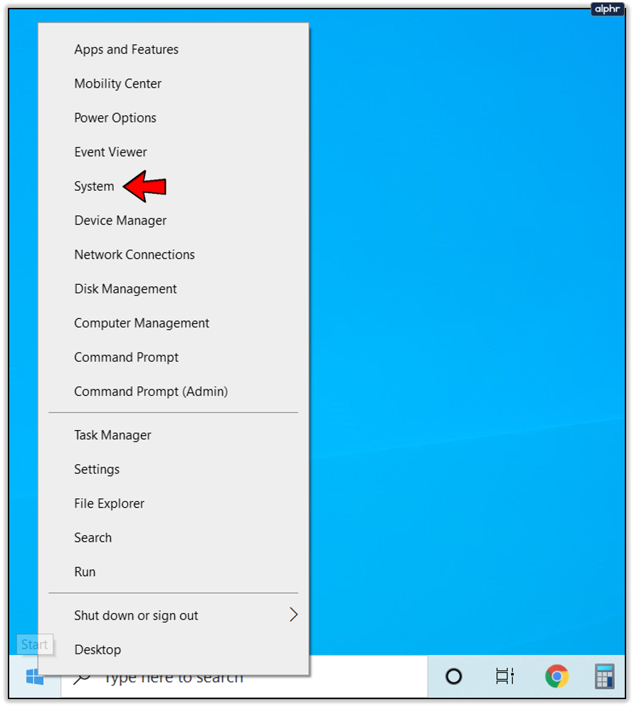 - Right click the Windows Start Button and select System.