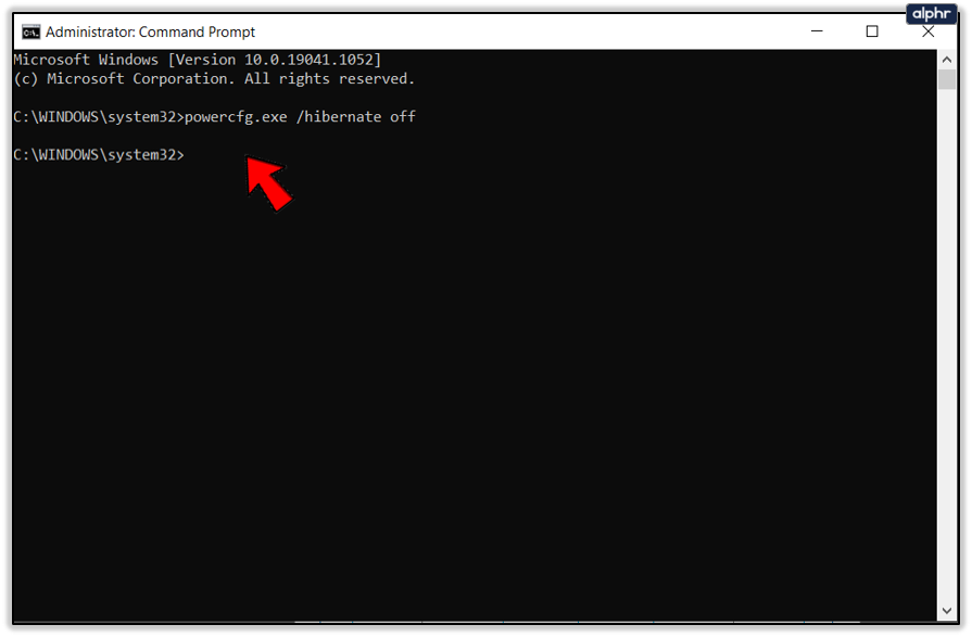 - Type or paste ‘powercfg.exe /hibernate off’ and hit Enter.