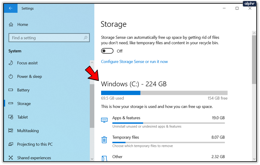 - Select Storage Sense.