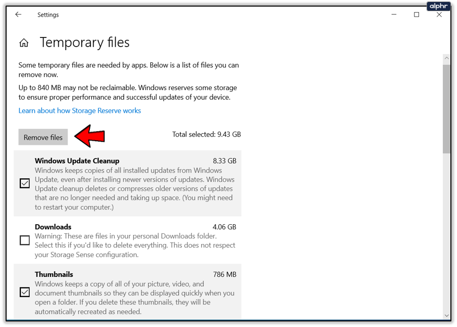- Select Remove files and let the process complete.