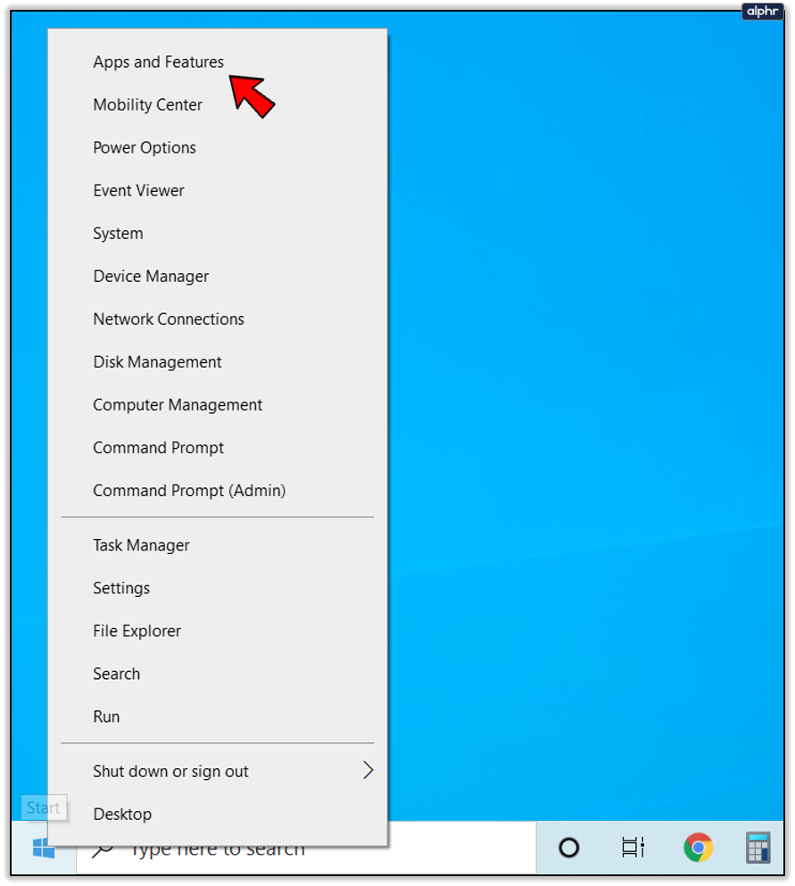 - Right click the Windows Start Button and select Apps and Features.