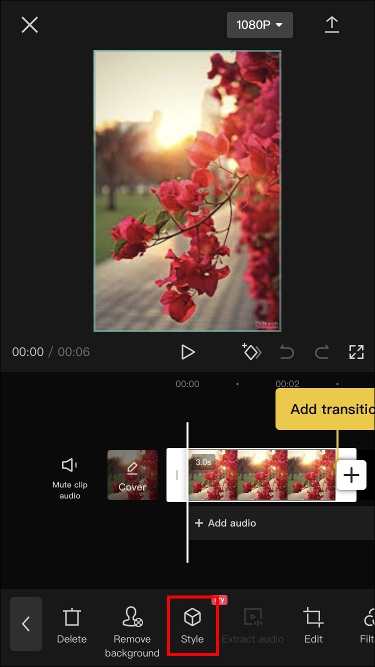 - Tap the photo’s frames, scroll the bottom menu, and select “Style.”