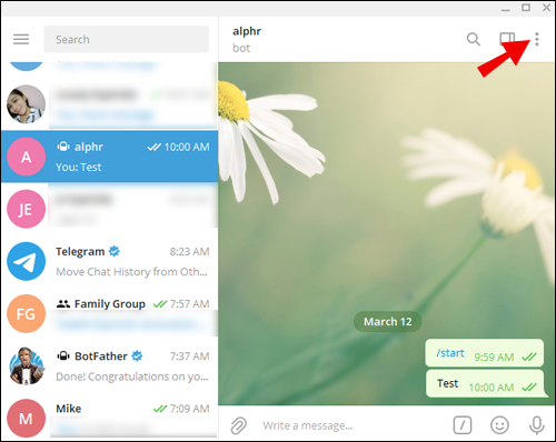 - Open the chat with the bot in question.