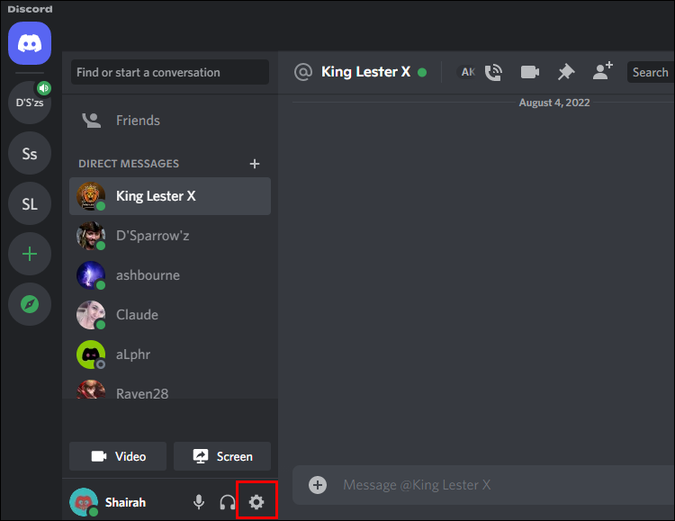 - Navigate to your Discord “Settings” by clicking on the “Gear” icon.
