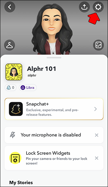 - Tap the cogwheel icon in the top right corner to access “Settings.”