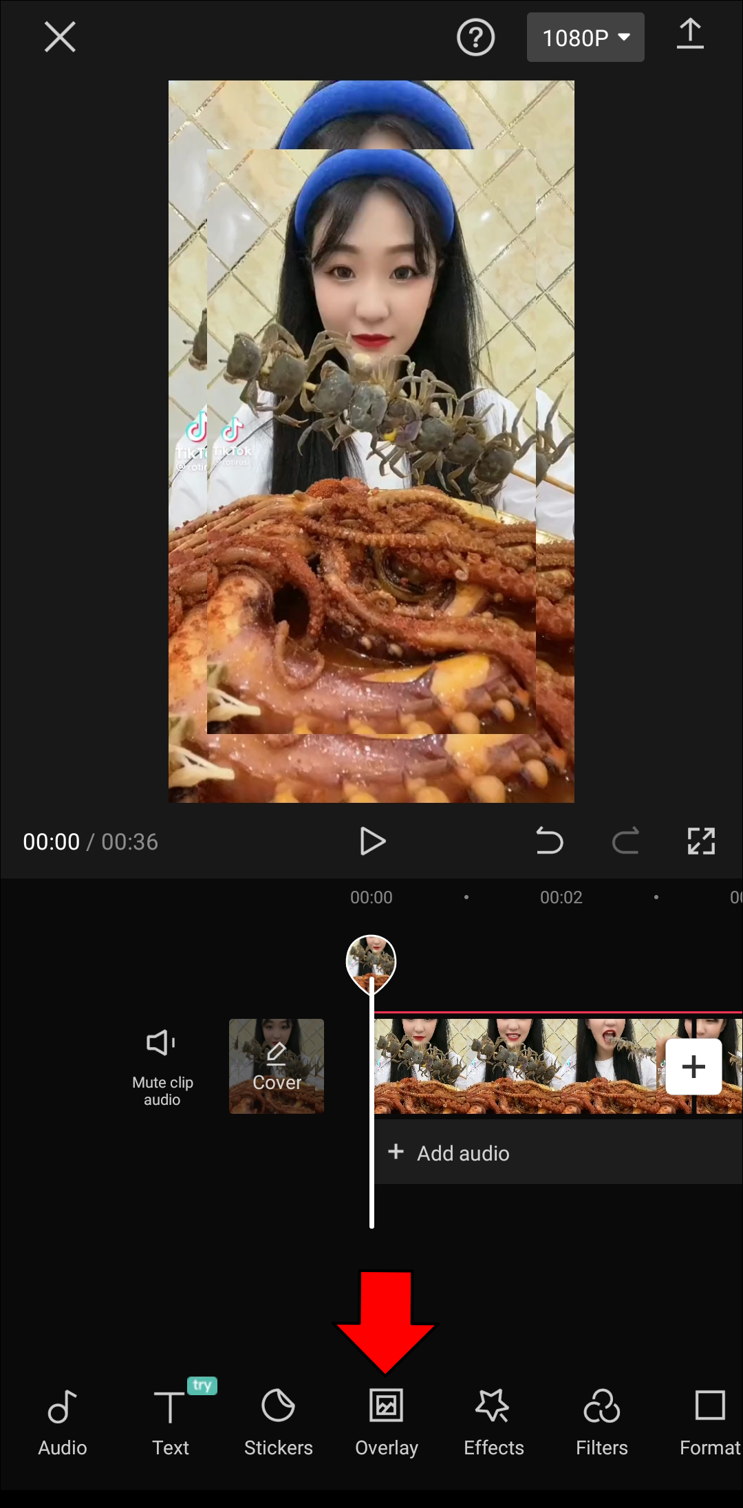 - Upload the video to CapCut and navigate to “Overlay” option on the bottom menu.