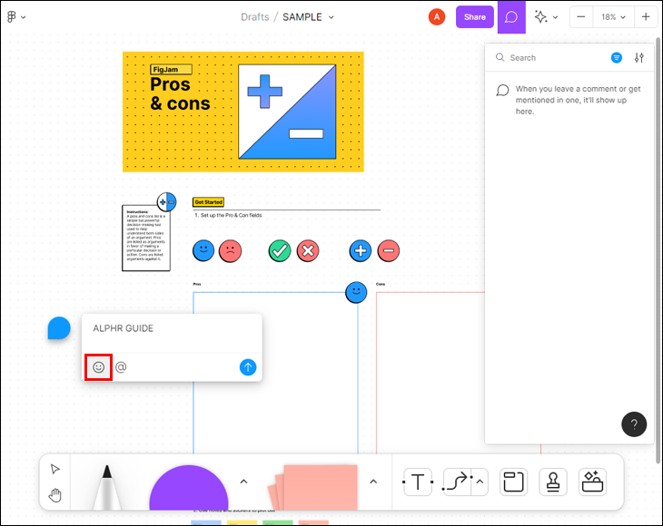 To ensure your message comes across as intended, you can add emojis to your comment. You can choose any emoji from the Apple emoji collection that Figma uses.