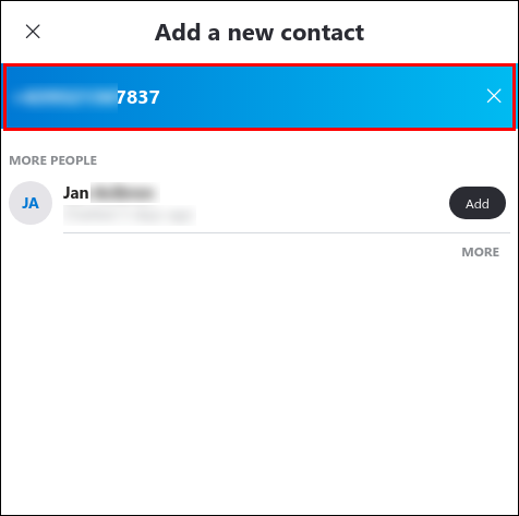 - If not, at the top of the page the blue bar will ask for the Skype Name, email, and the number of the contact you wish to add. Enter the details you have.