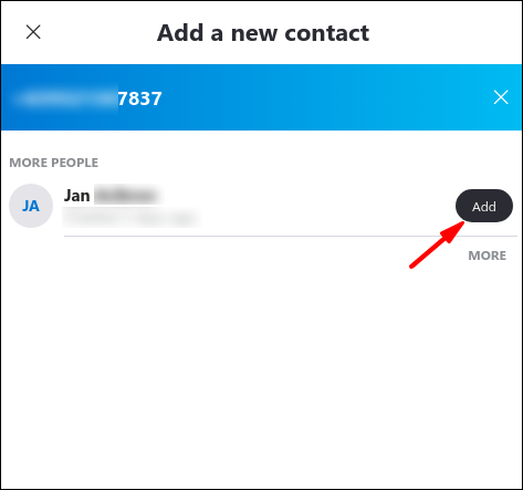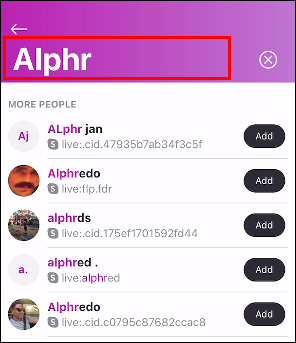 - As you type, Skype will auto-suggest contacts from the provided list. Select the applicable one to add to your contact list.