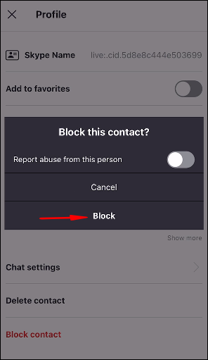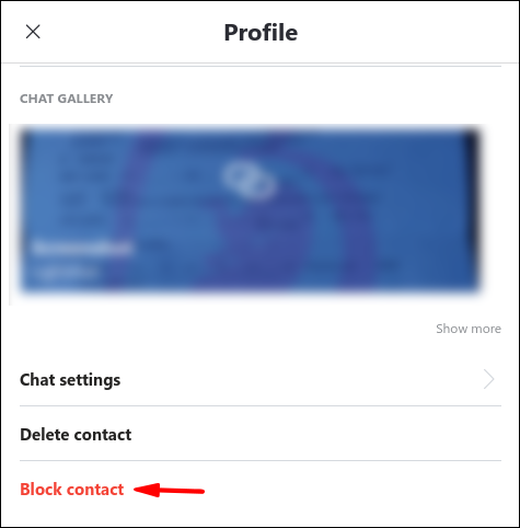 - At the bottom of their profile, select “Block contact.”