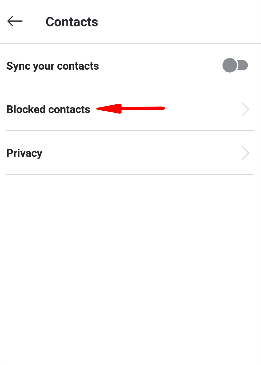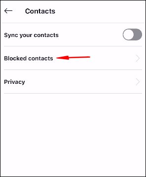 - Select “Contacts” then “Blocked contacts.”