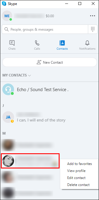 To delete one of your Skype contacts: