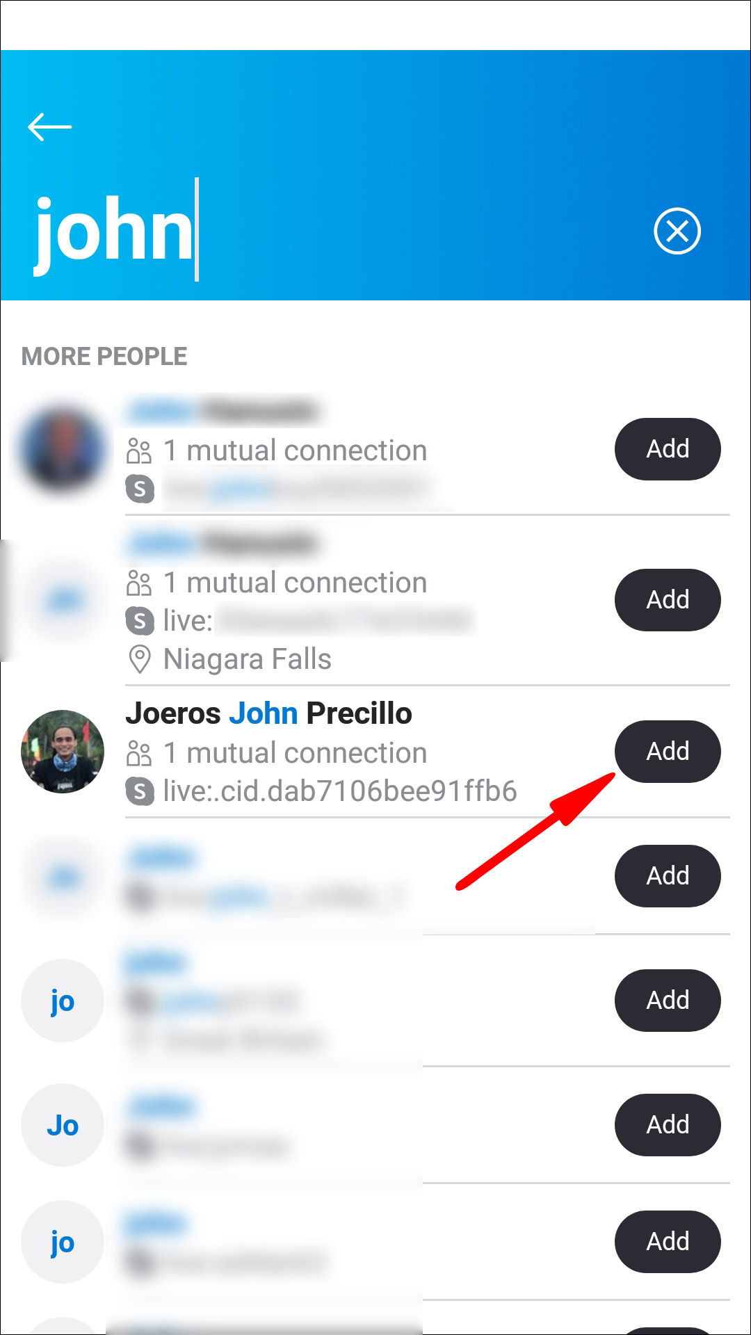 - You will now see another list of suggestions; select “Add” for the applicable person.
