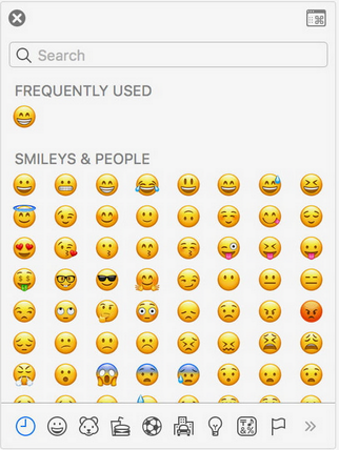Macs also have emojis built in on newer versions of MacOS. If you’re used to using them on your iPhone, you will find similar ones available on your Mac as long as you have updated to the latest OS version. It’s a similar setup to PC, a small window that allows you to select emoji and insert them into an open app as you see fit.