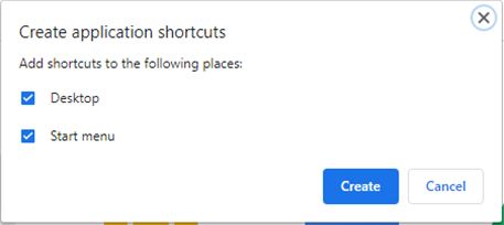 - Press the blue Create button. The shortcut should appear on your desktop.