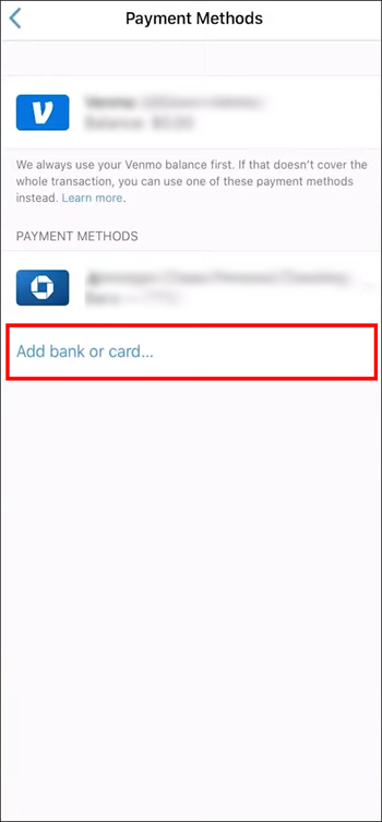 - Tap on “Add bank or card.”