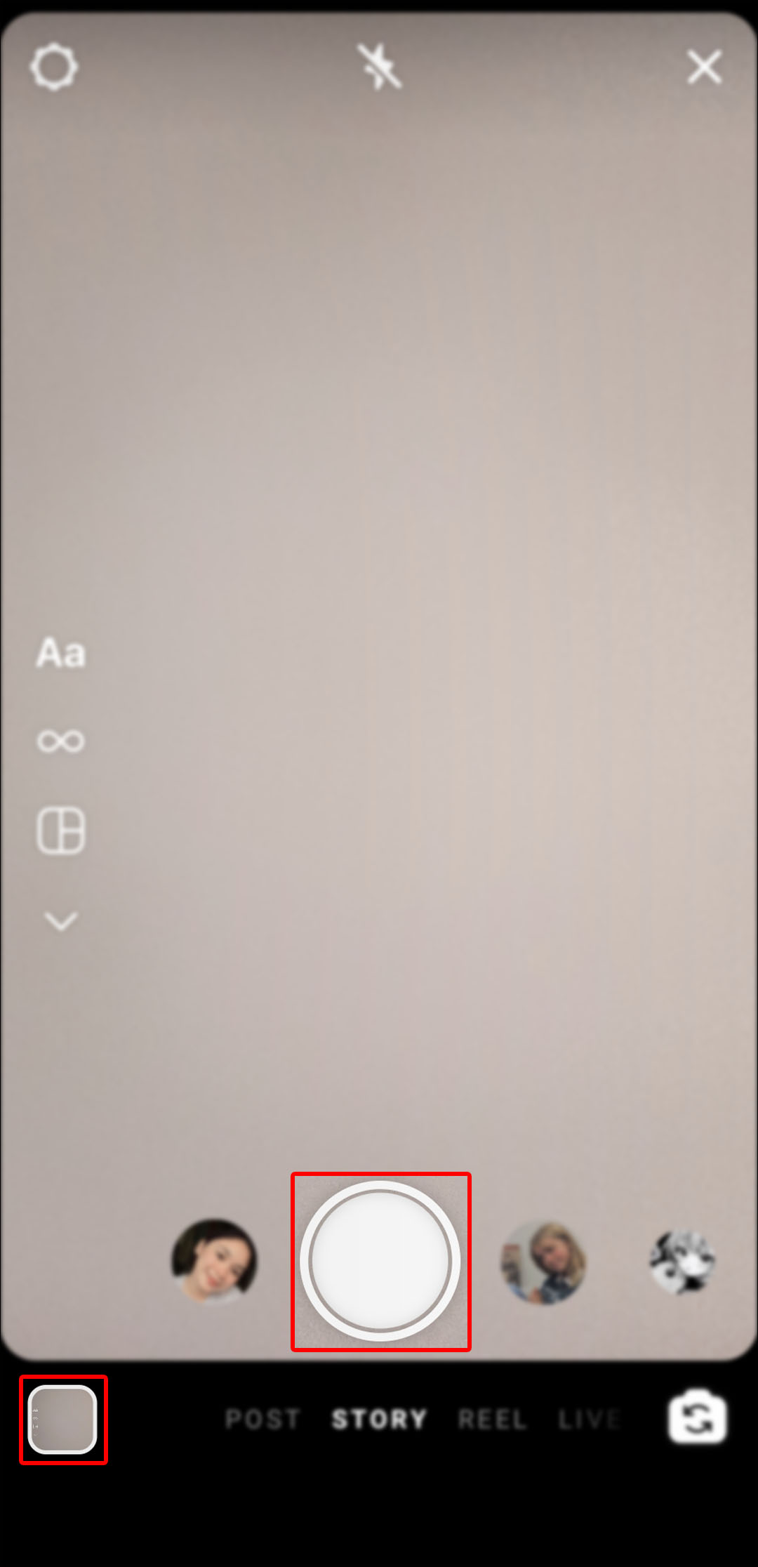 - Take a picture or video you wish to use as a Story. Alternately, you can tap on the gallery icon in the bottom left-hand to use a pre-existing file from your Camera Roll.