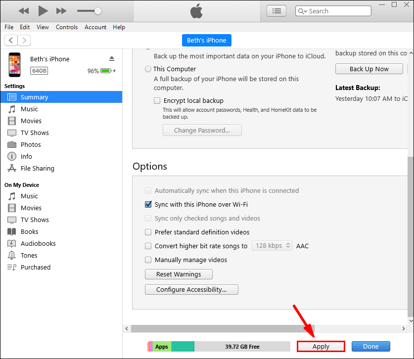 You can make your iPhone sync over Wi-Fi after this process. Here’s how: