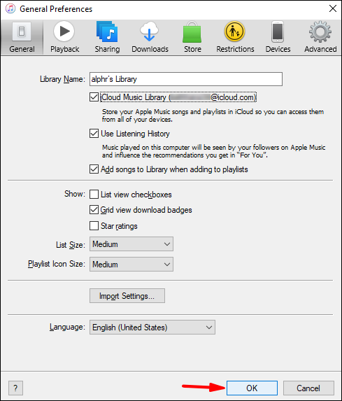 - Go to the General tab and from there, select “iCloud Music Library.”
