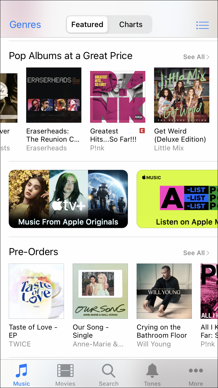 You can still buy music through the iTunes Store app if you don’t have a subscription to Apple Music. This method ensures you can listen to the album or track at all times. It is stored on your iPhone locally, there’s no need to connect to Wi-Fi and stream it.