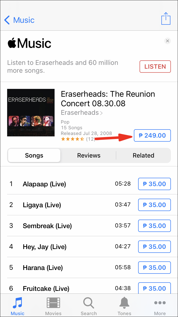 - Buy an album or individual tracks by selecting the price tags beside them.