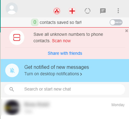 Once you receive a new contact through WhatsApp Web, you can open the browser extension and save the new contact directly on your browser. InTouchApp will then sync it to your mobile device the next time you open it on your phone.