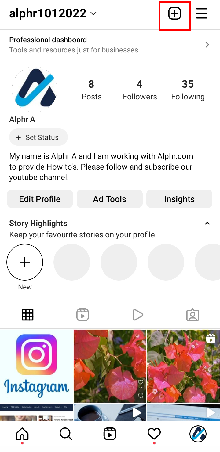 - Go to your Instagram profile at the bottom-right corner and select the menu.