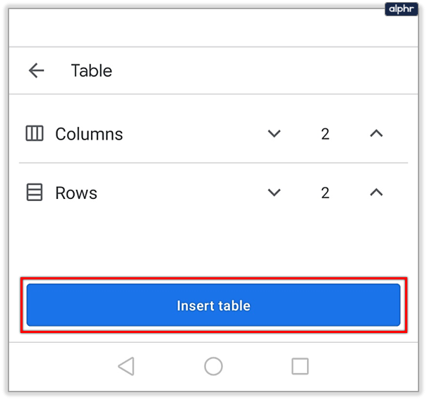 There you have it! Of course, you can edit the table whenever you want, by adding new rows and columns. All you have to do is tap the side of the table where you want to add a new cell, and then tap on the plus sign.