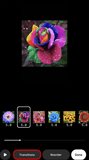 - You will see your clips in the order they’ll be played. Click on “Transitions” on the bottom left side.