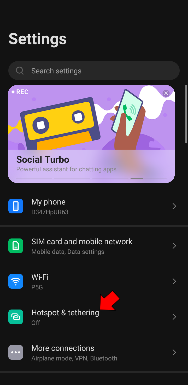 - Tap on “Tethering & Portable Hotspot.”