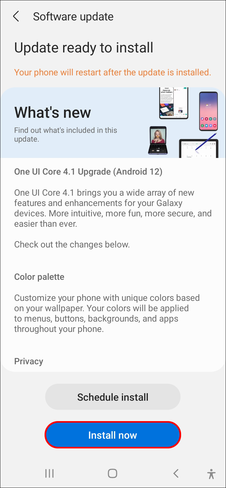 Your phone will automatically reboot during the update. When it’s done, it should begin working normally again.