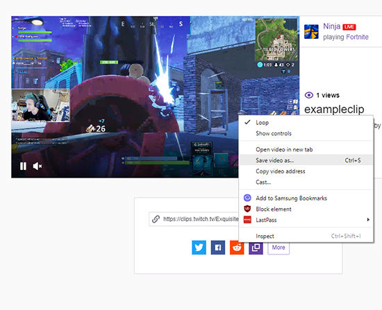 Apply your changes and leave the settings page. Refresh Twitch and find the clip you want to download. Any time you find a clip, you can now right-click the clip inside the video player and select “Save Video As…”