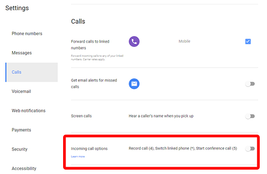- Google Voice: If you’re a Google Voice user, you’ll be glad to know that the Voice app can already record calls by default. It isn’t automatic, and the app can only record incoming calls (to try and curb concerns surrounding consent), but it is a viable, and very easy to use option. Head over to your settings menu inside Google Voice, select the Calls tab, and enable “Incoming Call Options.” Now, when you’re in a call inside Google Voice, and you tap “4” on the dial pad, a message from Google will announce a recording has begun. You can stop the recording at any time by tapping “4” again, and another message from Google will let the callers know the recording has ended.