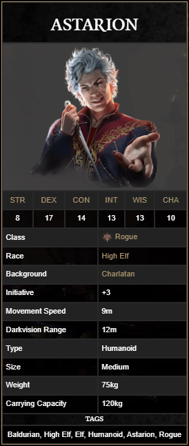 This noble rogue elf is a favorite character for many BG3 players. You’re likely to encounter him early in the game while moving along the shores of the Nautilus shipwreck, moving west towards the sandy hill. He’ll readily join your team for battle.