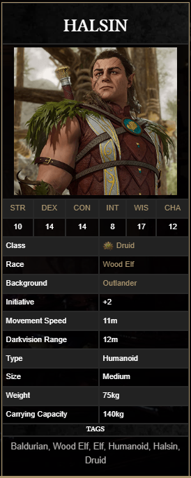 You can only unlock Halsin after completing a special quest involving fierce challenges. Haslin’s story primarily revolves around the Goblin’s camp. Taking the form of a bear, you’ll find him locked inside some Worg pens inside the camp.