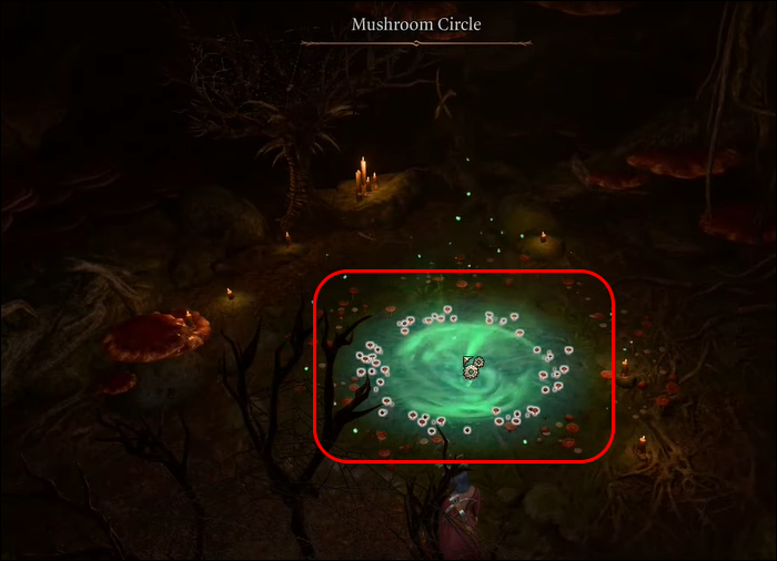 - You’ll then find a circle of mushrooms, which you can use as a portal to teleport to the Underdark.