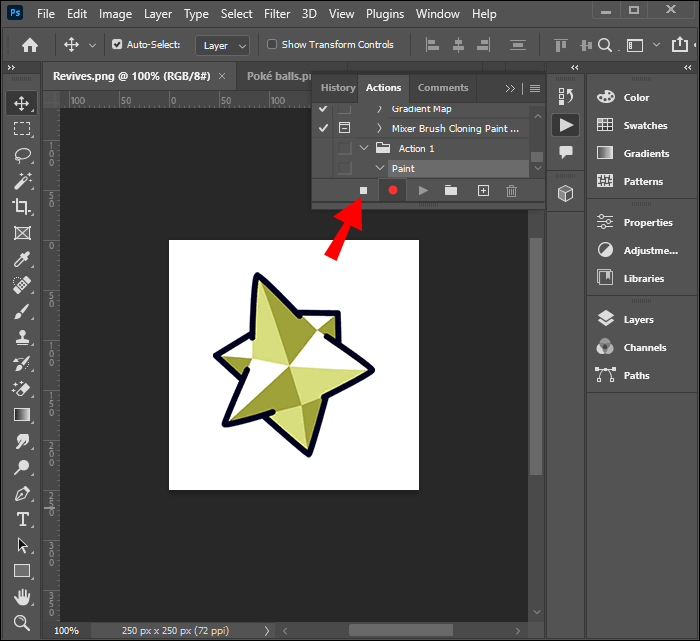 - Go to the Actions panel and hit the “Stop recording” icon to stop recording the action.