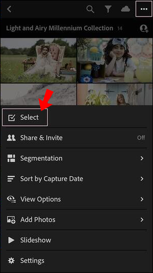 • Click on the three dots icon and choose “Select.”