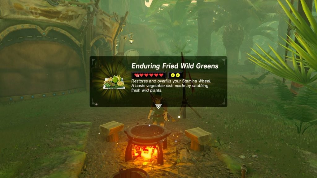 Fried Wild Greens is a simple but effective recipe, and there are many ways you can modify it to add special effects. With the aid of an Endura Carrot, you can craft Enduring Fried Wild Greens, which give you some bonus stamina.