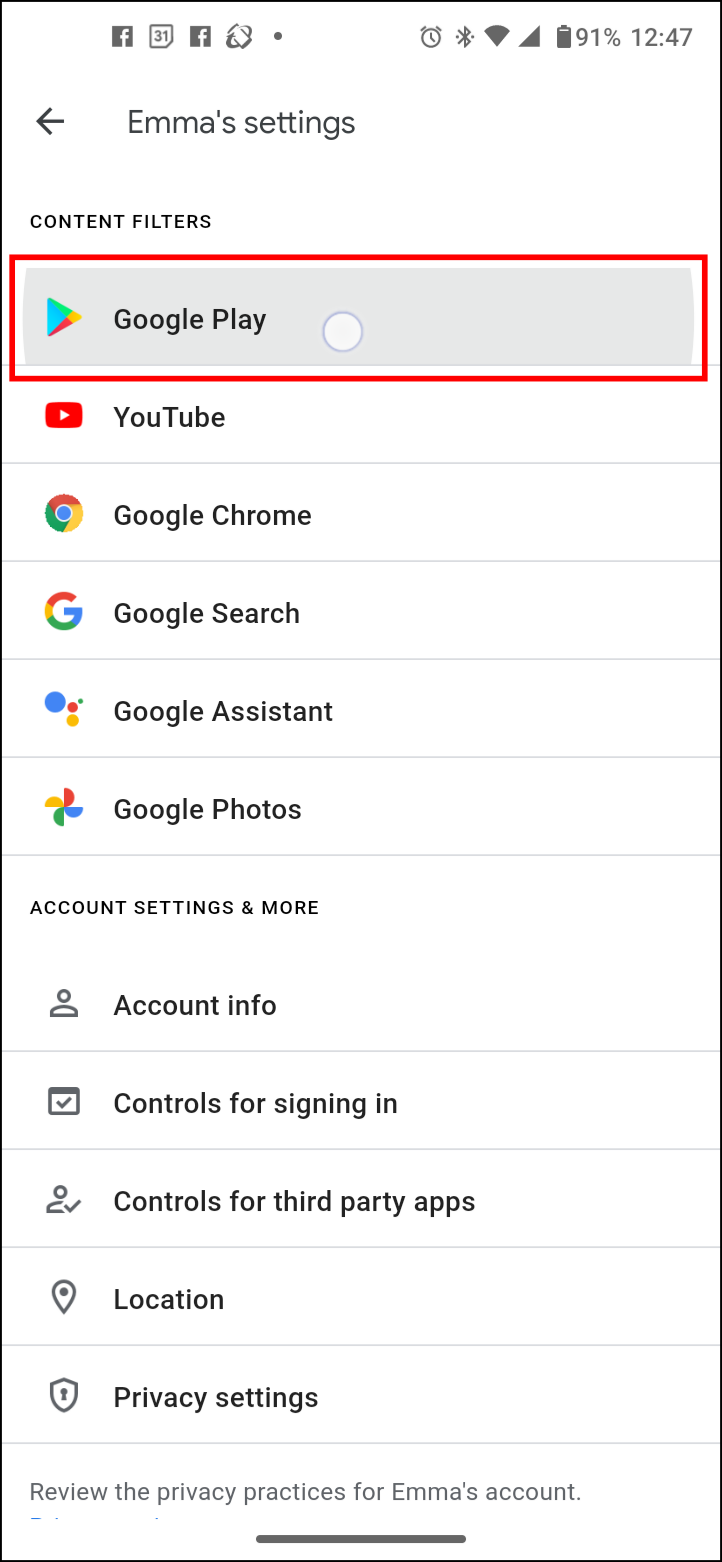 Unfortunately, the Google Play Store doesn’t give us the option to block certain apps. The only option to restrict an app from downloading is to follow the steps above to use parental controls and block apps for an age group.