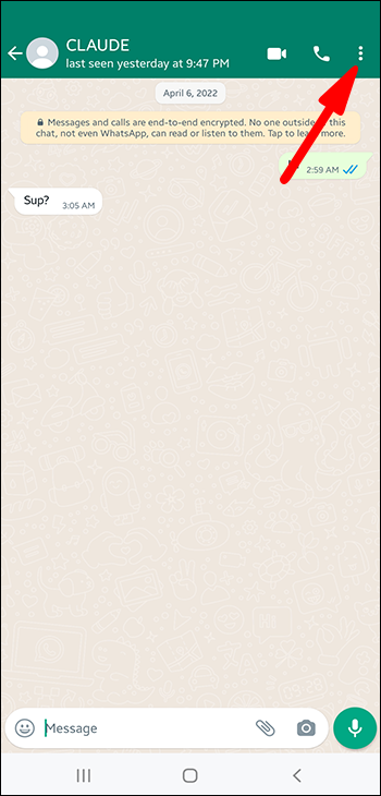 - Open the chat and tap the three vertical dots at the top right corner.