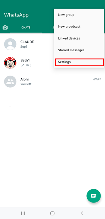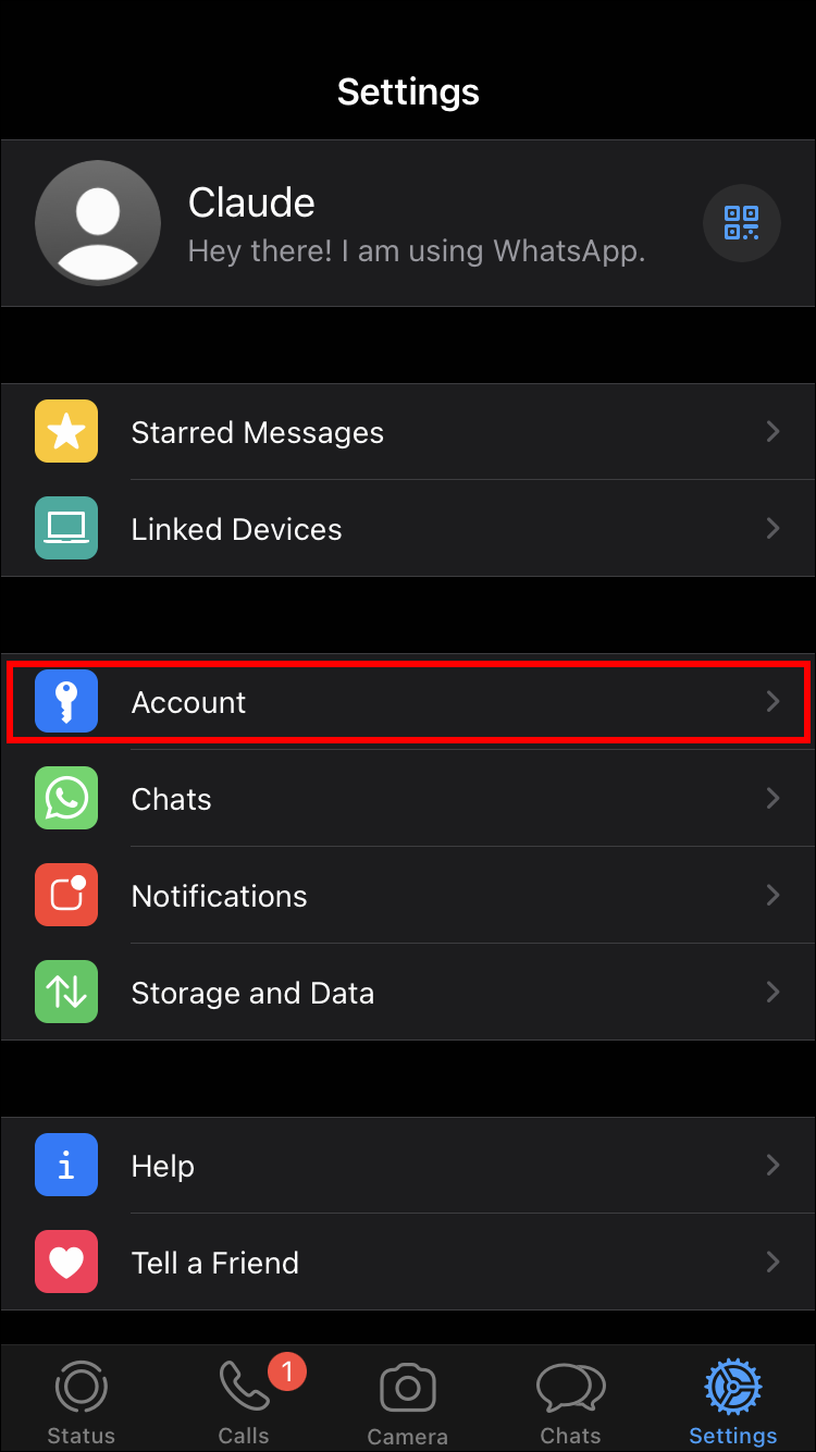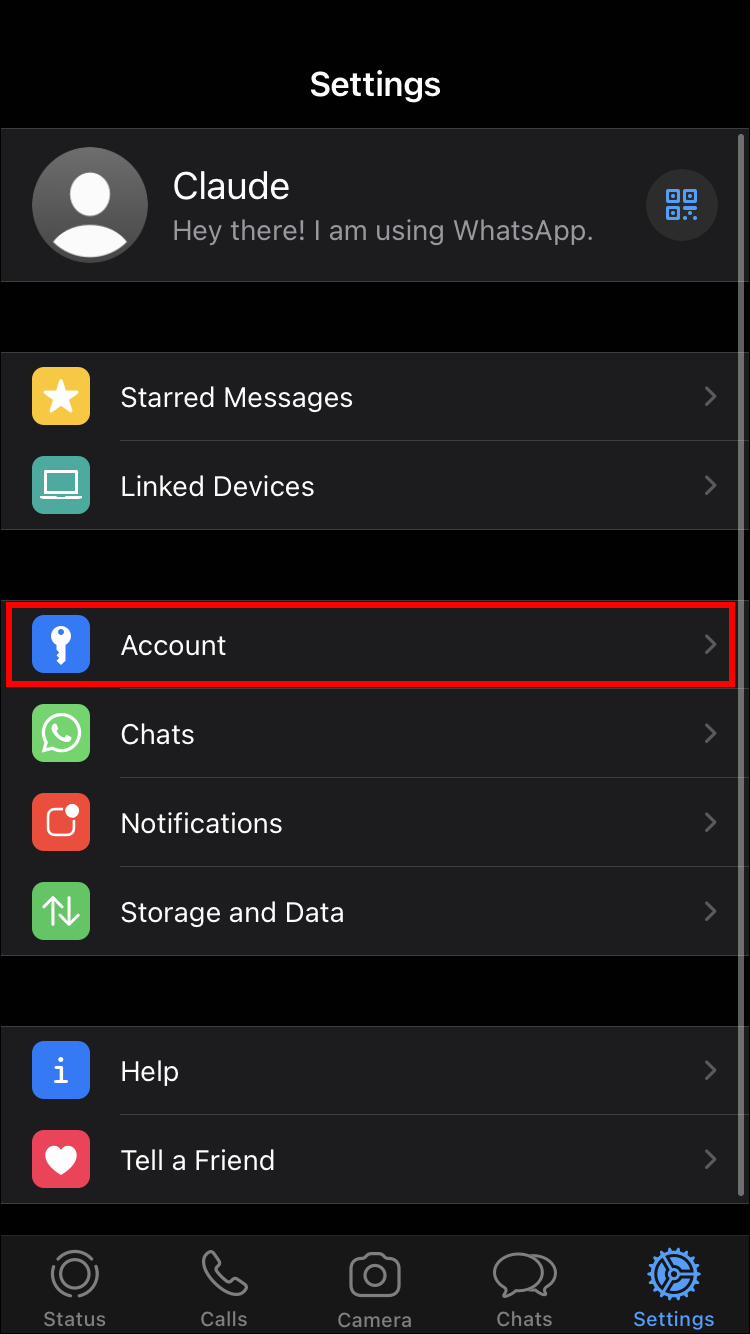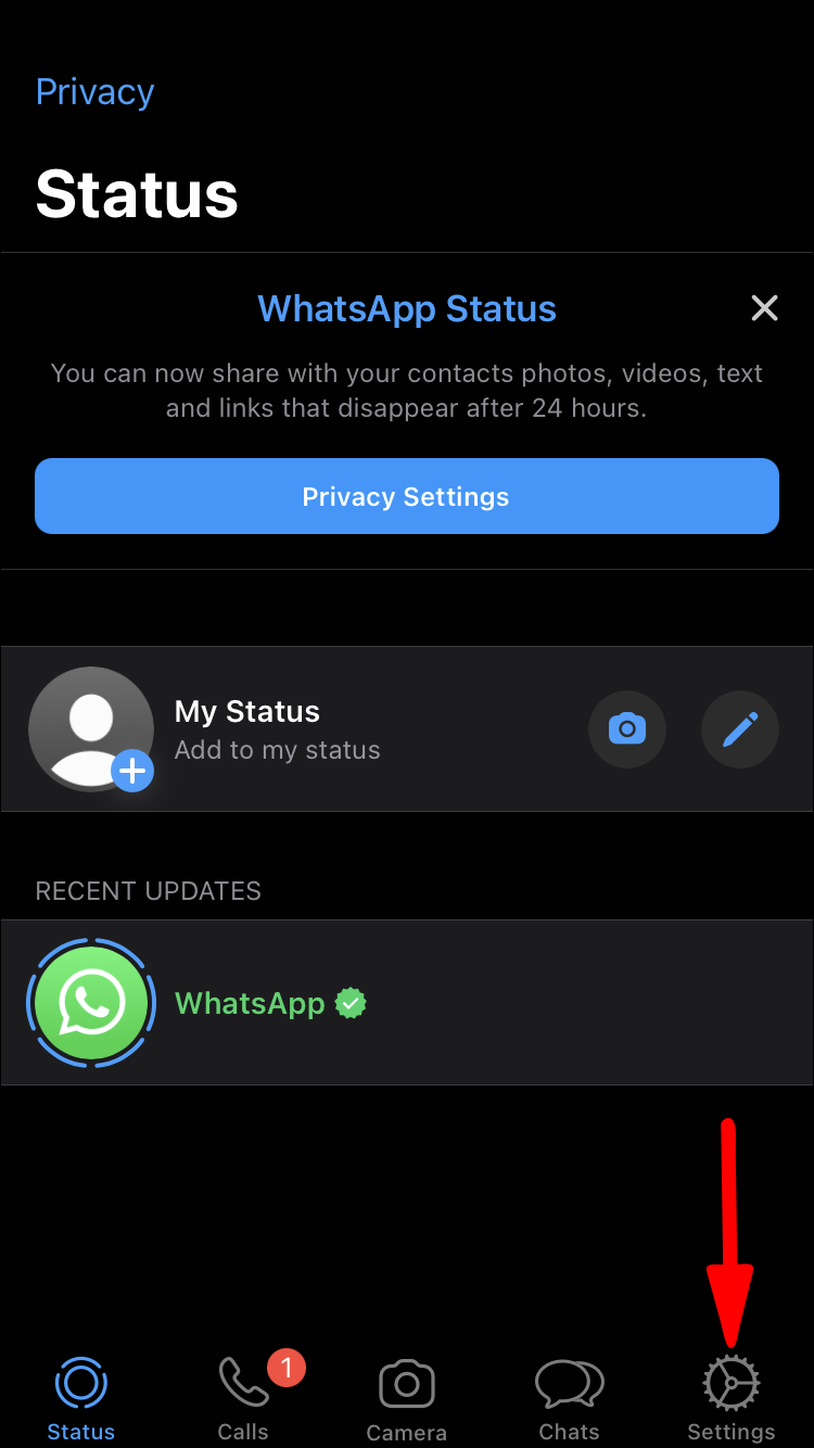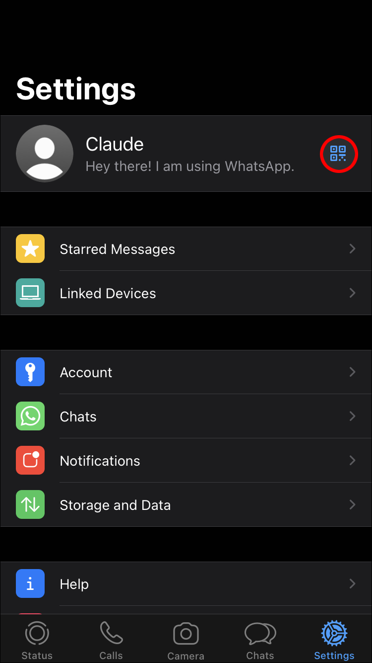 - Hit “Settings” in the bottom right of the WhatsApp home screen.