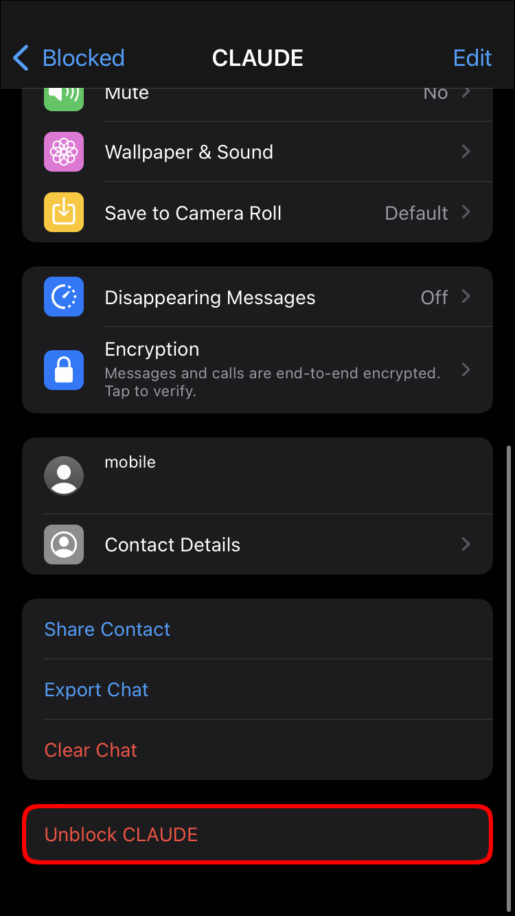 - Tap the contact’s name and tap “Unblock Contact” on the contact’s details page.