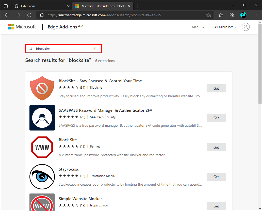 - Search for “Block Site” or browse for extensions under the “Privacy & Security” category.