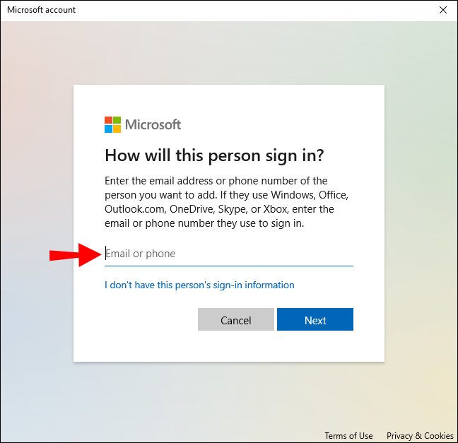 - Scroll to “Family and Other Users” on the left pane to open the menu.