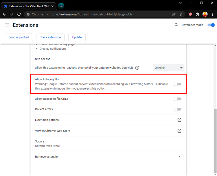 Other users may try to get around the Block Site restrictions by using Chrome in incognito mode. These steps will prevent that from happening: