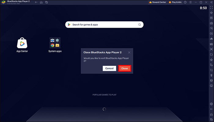 - Close the “BlueStacks App.”