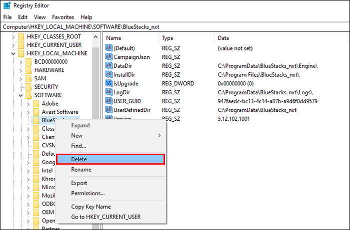 The last thing you need to do when completely removing BlueStacks from your PC is to remove the registry entry.