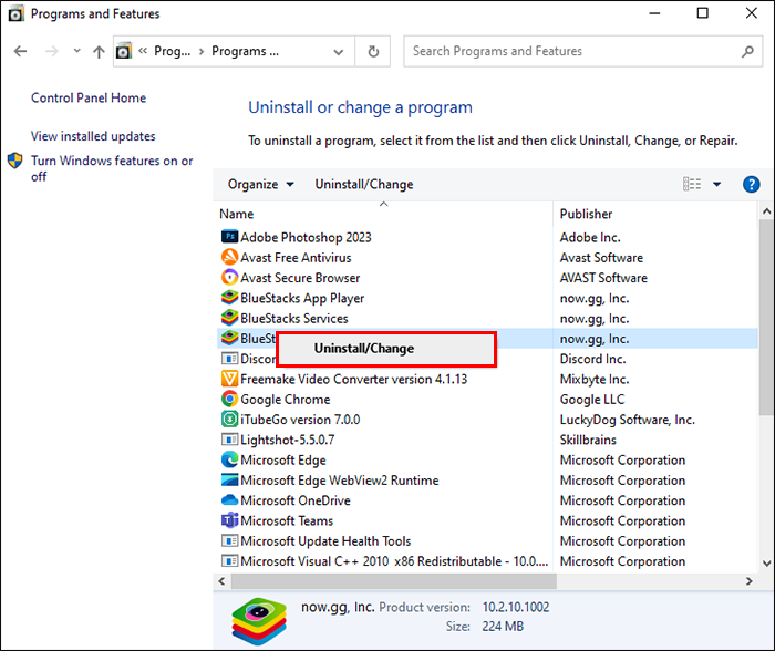 - After you find BlueStacks, right-click on it and click “Uninstall.”