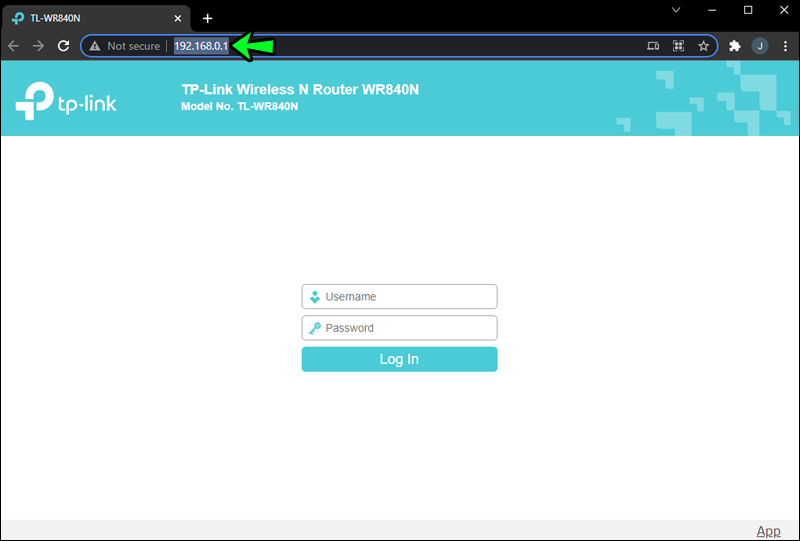 - In a web browser, enter the IP address for your router’s admin panel. It’s typically 192.168.0.1 or similar.